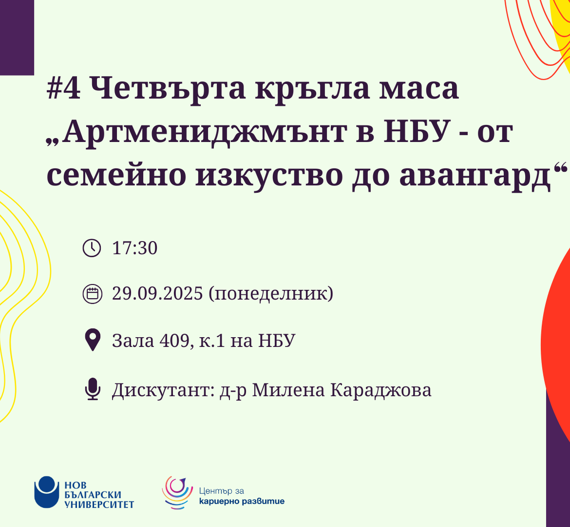 Четвърта кръгла маса „Артмениджмънт в НБУ – от семейно изкуство до авангард“, септември 2025