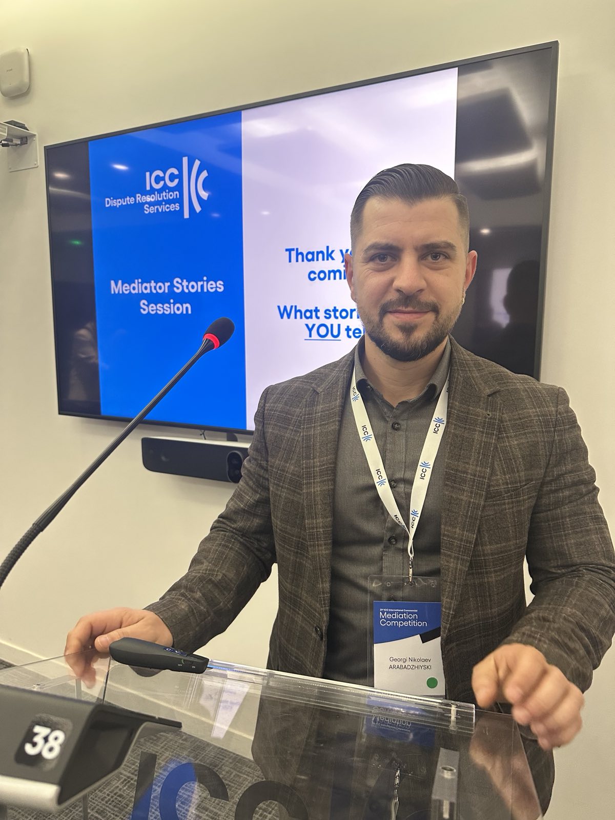 Студентът Георги Николаев Арабаджийски споделя: „Участието ми включваше наблюдение и активно ангажиране в медиационни сесии по международни търговски казуси, анализ на прилаганите медиационни техники, както и оценяване на представянето на участниците в състезанието. Особен фокус беше поставен върху ролята на медиатора, управлението на конфликти, ефективната комуникация, идентифицирането на интересите на страните и постигането на устойчиви и взаимноприемливи решения. Съществена част от опита ми беше възможността да съпоставя собствените си наблюдения и оценки с експертната обратна връзка на международни съдии и опитни медиатори, което допринесе за задълбочаване на аналитичния ми подход и разбирането ми за критериите за успешна медиация в мултикултурен контекст. Събитието предостави ценни прозрения относно относителността на фактите и истината в един спор, влиянието на културните различия, индивидуалните възприятия и ценности, както и ключовата роля на доверието за промяна на позиции и постигане на споразумение. Участието ми не е само като източник на професионално развитие в областта на управлението на конфликти и преговорите, но и като значим принос към ролята ми на ментор и помощник треньор на отбора по медиация. Придобитите знания и практически наблюдения ще бъдат целенасочено използвани при подготовката на отбора за Националното състезание по медиация през 2026 г., както и в професионалната ми дейност, свързана с управление на процеси, комуникация със заинтересовани страни и вземане на балансирани решения в организационна и бизнес среда.“
